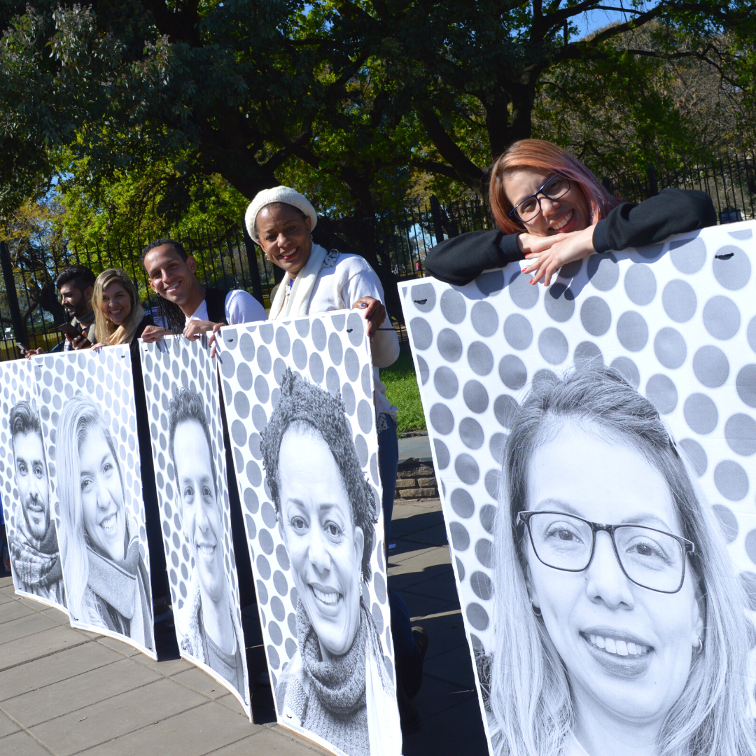 Cada uno de los retratados fueron fotografiados nuevamente con la imagen de su rostro frente a la mirada curiosa de muchos visitantes y turistas, así como transeúntes y habitantes de la ciudad de Buenos Aires. El cometido de causar un impacto visual entre la comunidad se cumplió, previo a la inauguración de una muestra de arte urbano, permisada en el enrejado de la plaza Rubén Darío, con el objetivo de visibilizar la integración en una nueva sociedad y en vísperas de la celebración del Día Nacional del Inmigrante, que en Argentina se celebra cada 4 de septiembre.